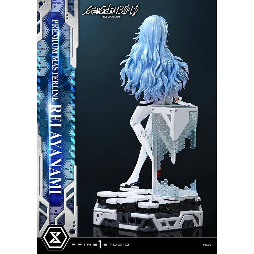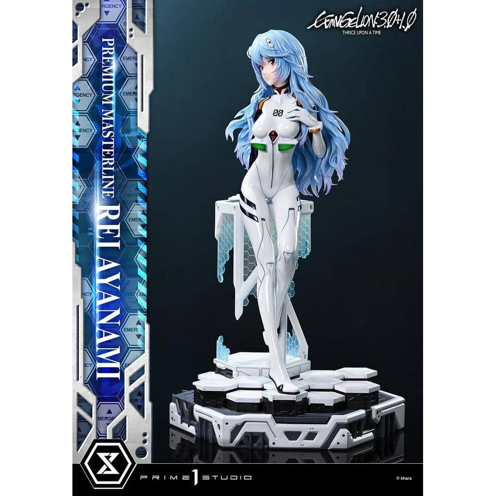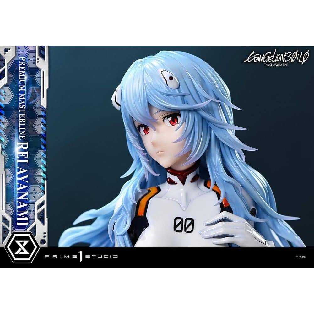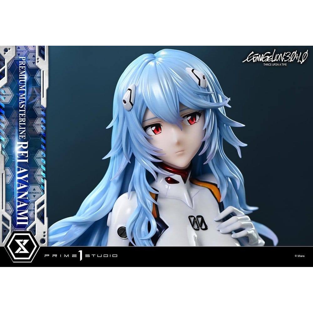 From "EVANGELION: 3.0+1.0 THRICE UPON A TIME", which brought more than a quarter-century of storytelling to a close, Rei Ayanami is realized as a Premium Masterline statue.