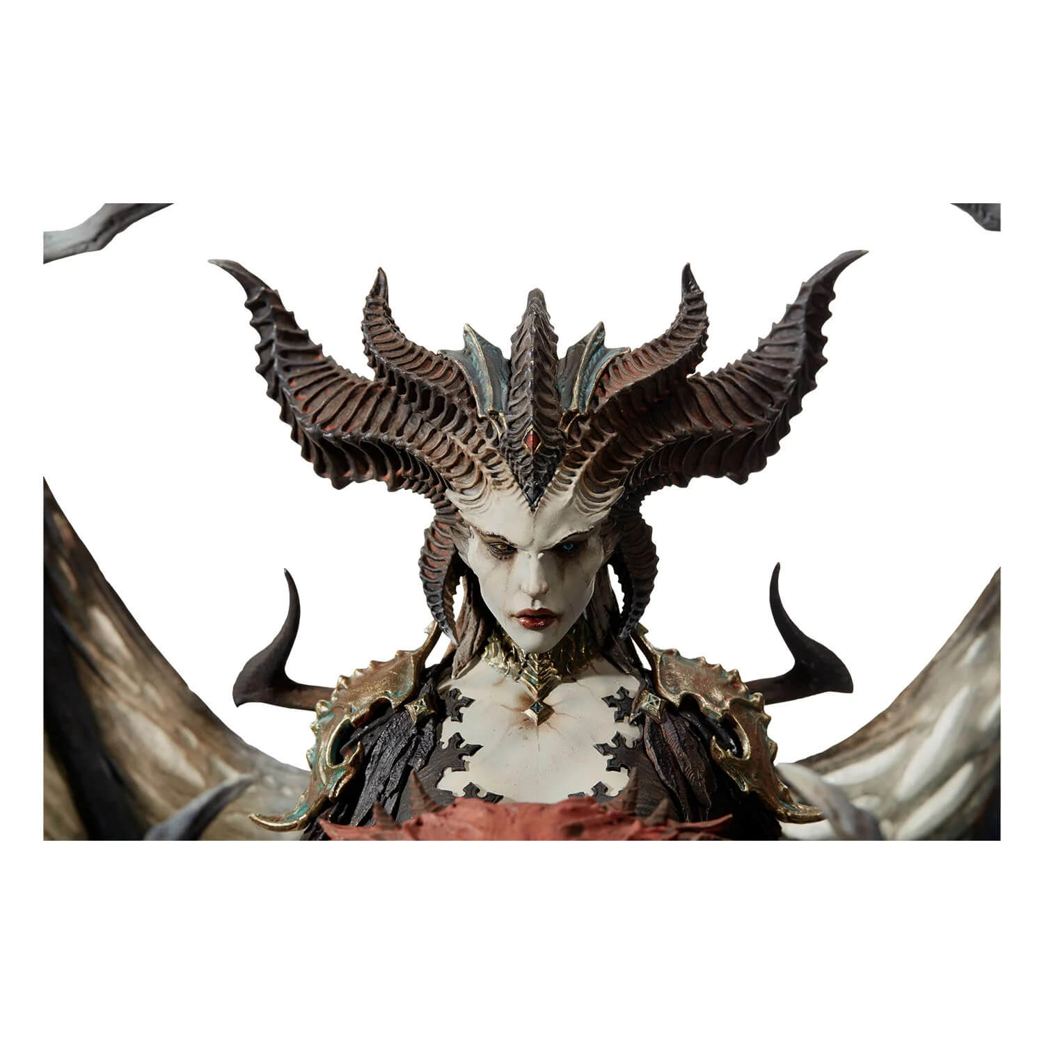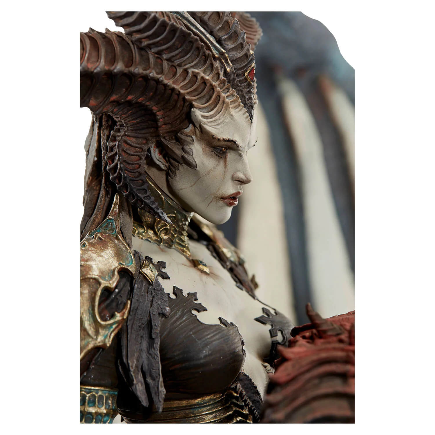 This premium polyresin statue of Lilith, a prominent figure in the Diablo video game series, is sure to impress the most demanding Diablo fan! Measuring over 60cm in height, its intricate detailing and expressive features bring her to life in stunning detail. A perfect showpiece for gamers and collectors alike.